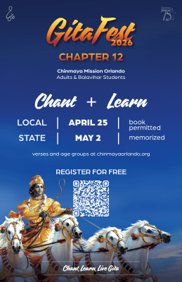 Chinmaya Mission Orlando will be conducting the annual Geeta Chanting event on Saturday, April 25, 2026. The theme of this year's event will be Chapter 12: bhakti-yogaḥ.